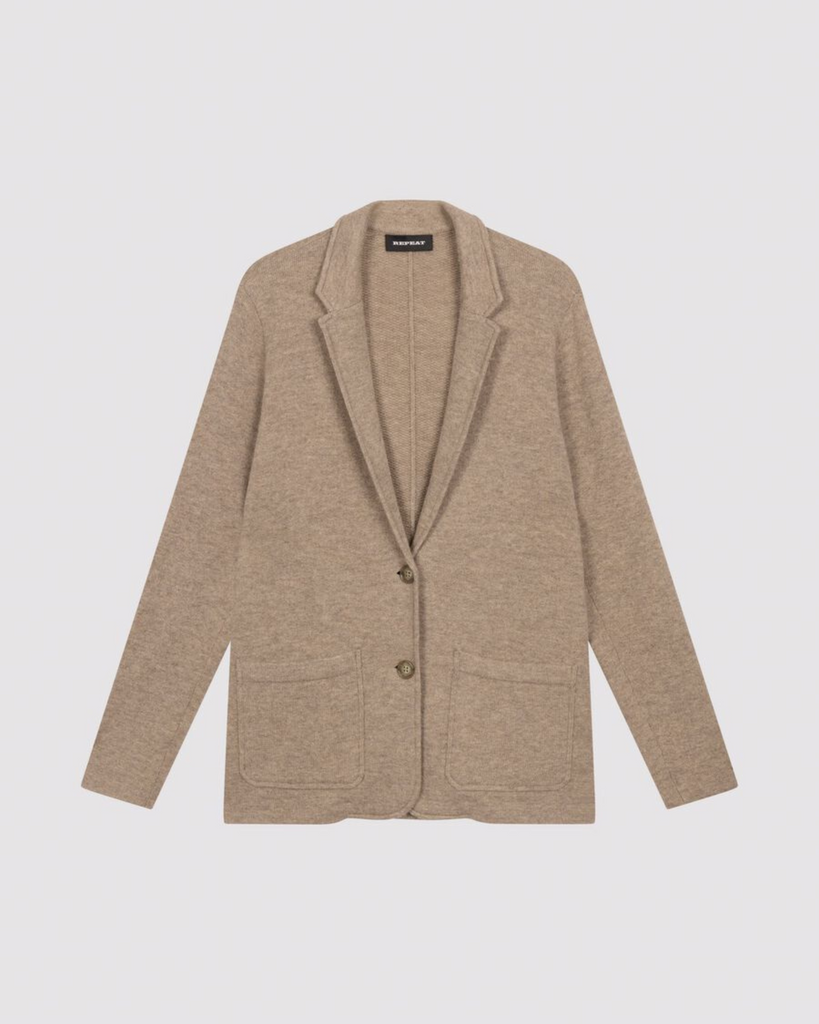 Repeat - Figure-Skimming Knit Cardigan With Lapel Collar
