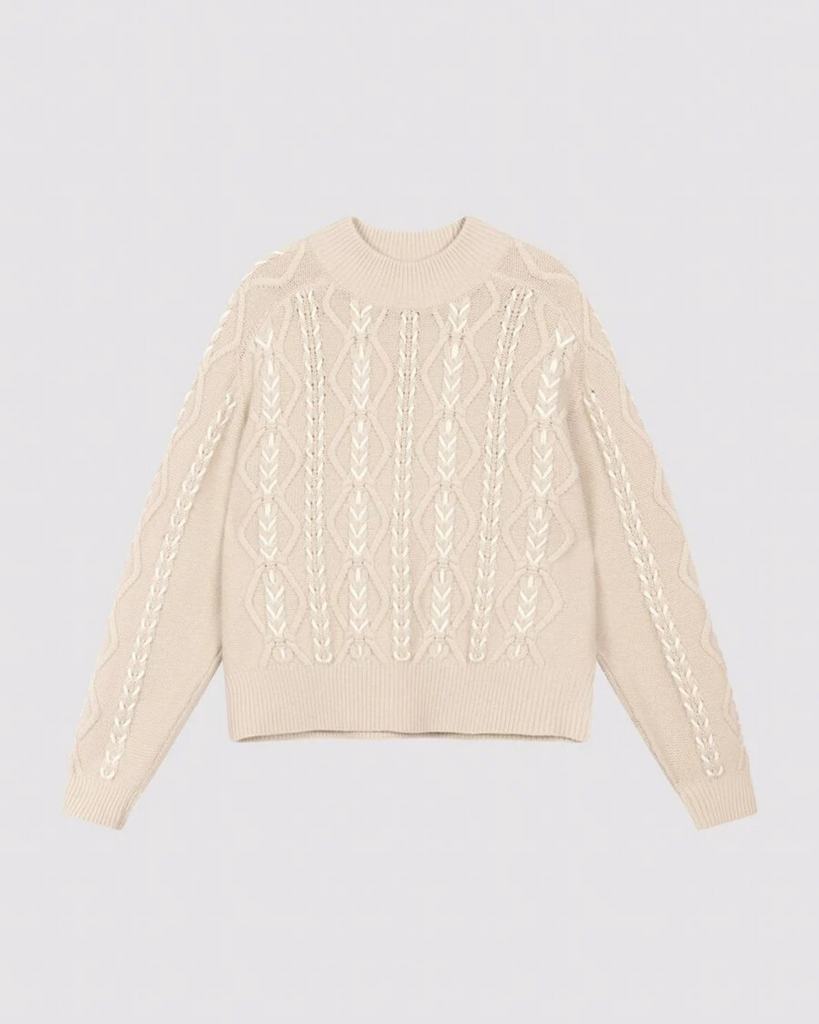 Repeat - Multicolour Cable Sweater With Hand Embroidery