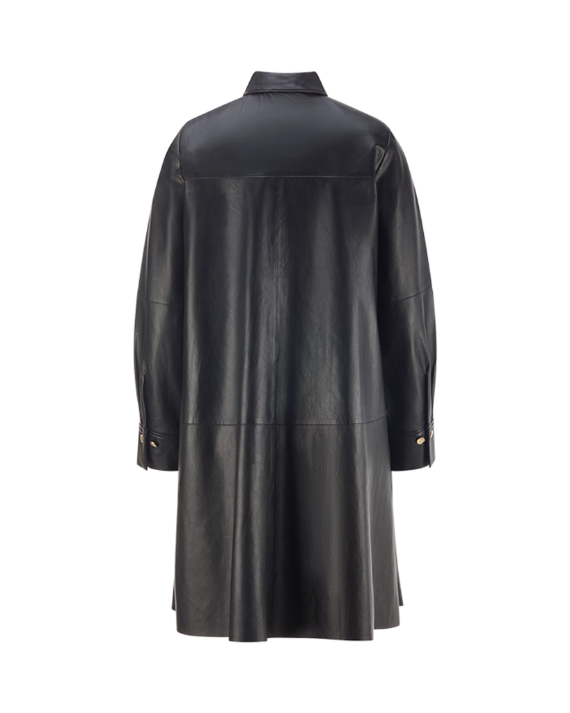 The RIANI leather dress is a true statement piece for a bold, expressive look. Crafted from high-quality, supple leather, it combines edgy coolness with an elegant silhouette. The precise tailoring ensures a perfect fit, while the luxurious material adds depth and character to any outfit. Ideal for RIANISTAs who wear fashion with attitude and want to highlight their feminine strength.