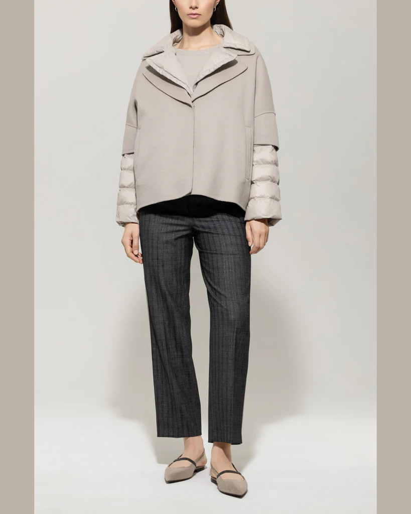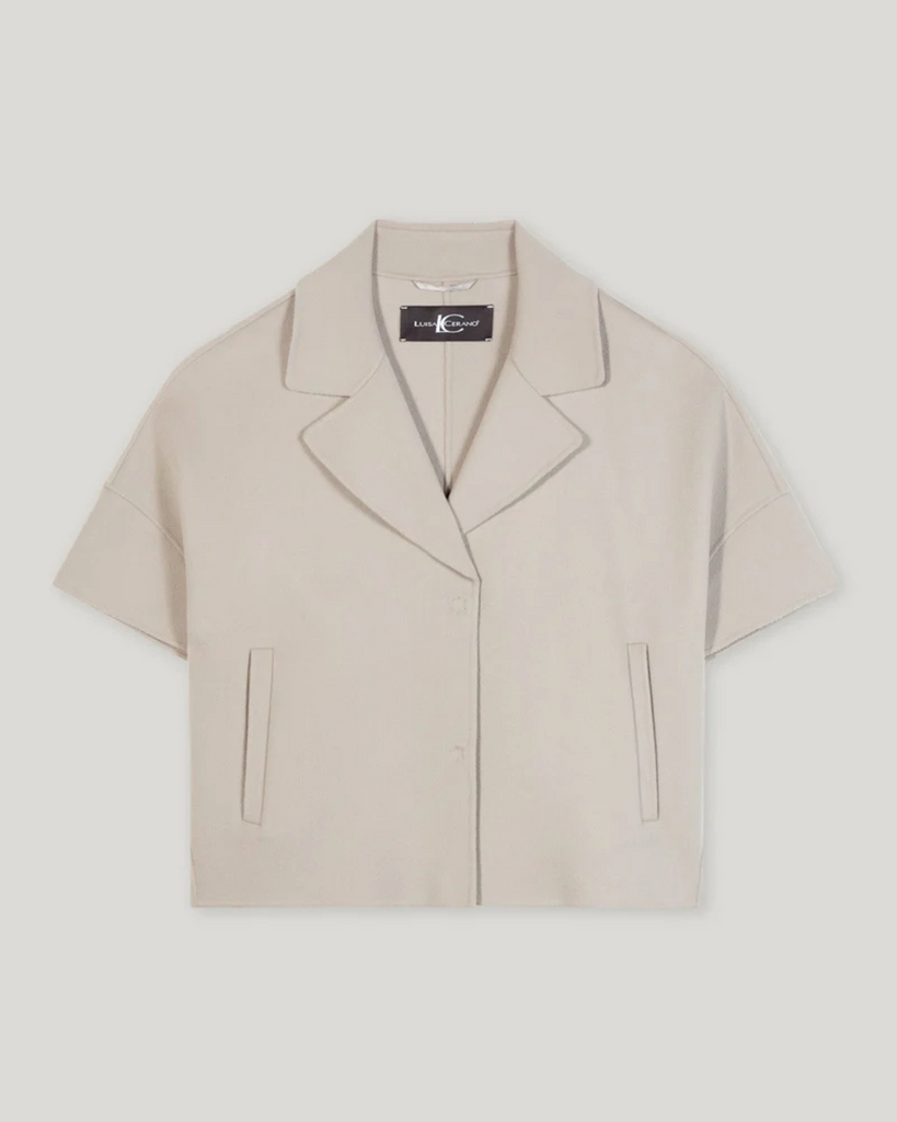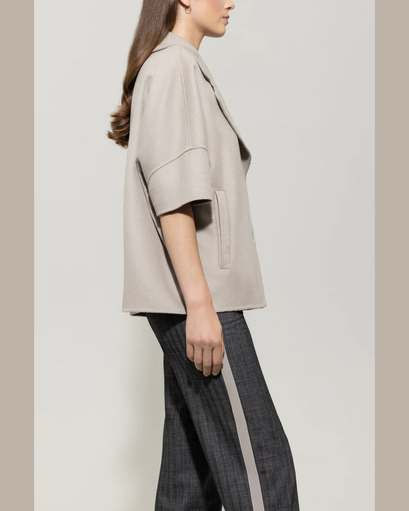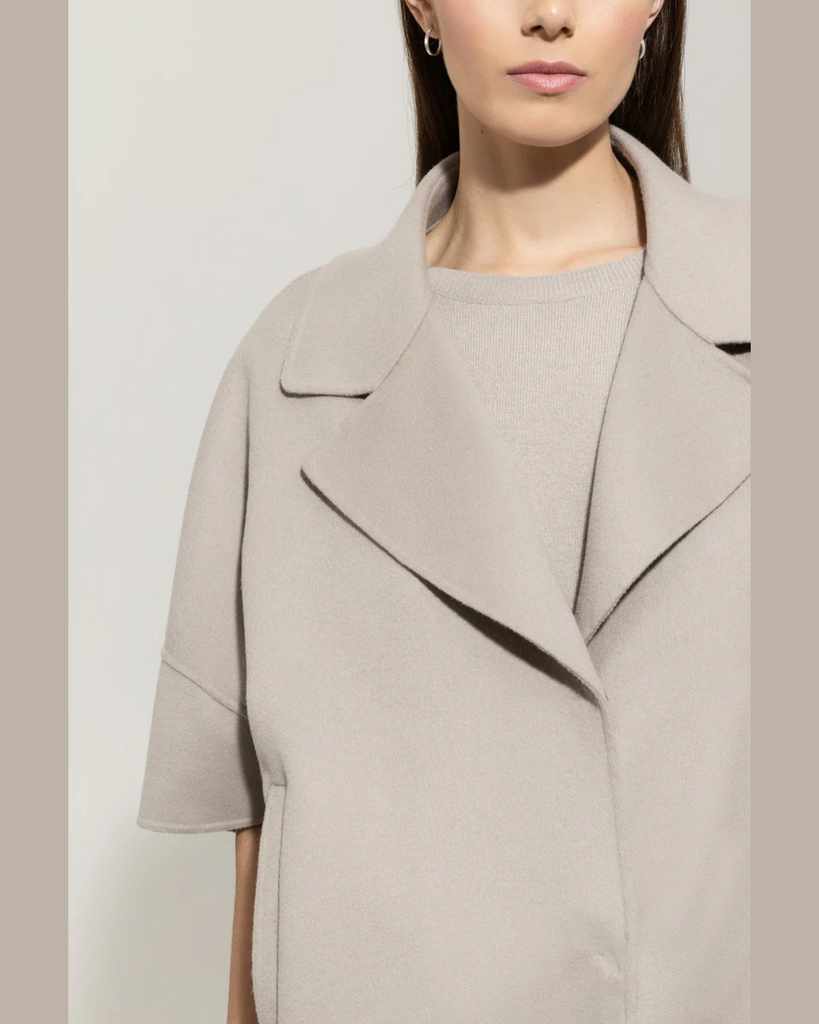 Warm cape made from a luxurious wool and cashmere blend with a double-face finish. The jacket has a concealed press stud placket and side slit pockets.